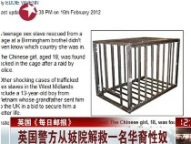 據(jù)英國(guó)《每日郵報(bào)》2月15日?qǐng)?bào)道,英國(guó)警方突襲伯明翰市一家妓院時(shí),解救出一名被關(guān)在籠子里的18歲華裔女性奴。