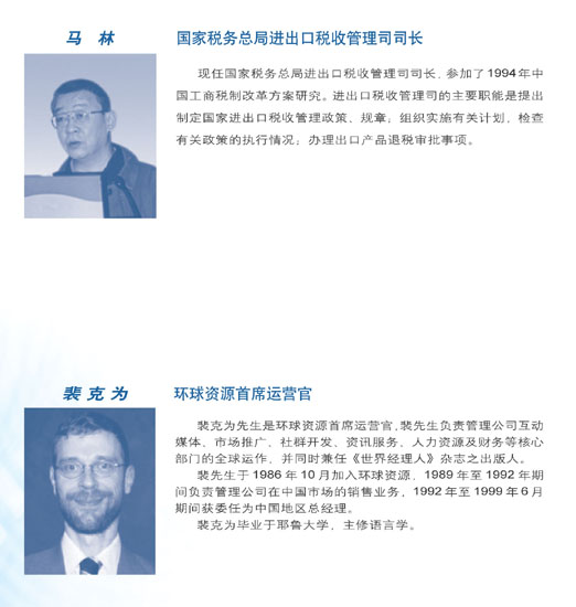 首屆年會(huì)于2003年1月10日在北京召開(kāi)。邀請(qǐng)了包括原外經(jīng)貿(mào)部副部長(zhǎng)龍永圖在內(nèi)的各有關(guān)政府部門(mén)領(lǐng)導(dǎo)、專家學(xué)者、企業(yè)家400多位嘉賓參加……<全文>