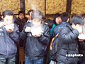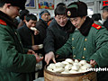 回鄉(xiāng)旅客上海站喝熱粥