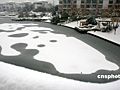 南京花神湖出現(xiàn)冰上雪