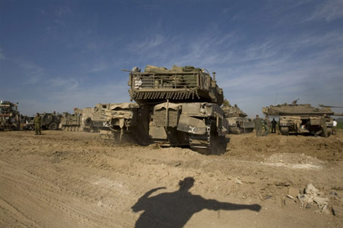 第八日 以色列軍隊(duì)3日下午開(kāi)始對(duì)加沙地帶發(fā)動(dòng)炮擊。這是2008年12月27日以軍開(kāi)始空襲加沙以來(lái)首次進(jìn)行炮擊。哈馬斯高級(jí)指揮官阿爾•賈邁勒在襲擊中喪生,他是第三位在以軍襲擊中喪命的哈馬斯高級(jí)指揮官。第二位是哈馬斯下屬武裝派別高級(jí)軍事指揮官阿布•扎卡里亞•賈邁勒,他于2日晚在空襲中受傷,3日早因傷勢(shì)嚴(yán)重死亡。當(dāng)晚,以色列發(fā)動(dòng)地面進(jìn)攻,戰(zhàn)爭(zhēng)全面升級(jí)。死亡人數(shù)上升至450人,受傷者達(dá)2300人。【詳細(xì)】