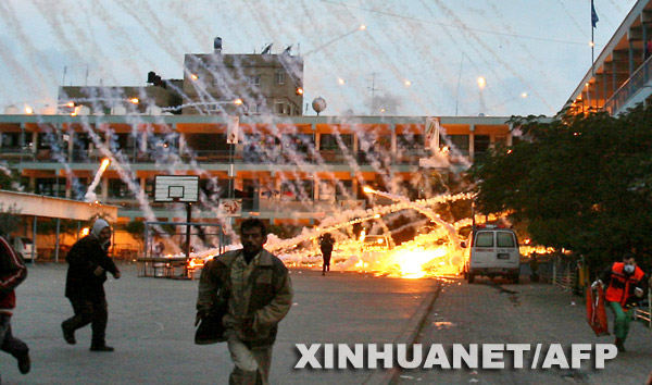 第十一日 以色列軍隊(duì)6日繼續(xù)從海陸空三方面向加沙地帶發(fā)動(dòng)軍事打擊,連續(xù)兩次擊中聯(lián)合國(guó)聯(lián)合國(guó)在加沙開(kāi)辦的學(xué)校,導(dǎo)致55人死亡。另外,以軍還空襲了一所由學(xué)校改造的難民營(yíng)。另外,以軍坦克還首次開(kāi)進(jìn)加沙地帶南部最大城市汗尤尼斯,以軍戰(zhàn)機(jī)也對(duì)這座城市進(jìn)行了轟炸。以色列總理奧爾默特提出了;鸬膬纱髼l件:終止埃及和加沙地帶之間的武器走私,終止巴勒斯坦武裝組織針對(duì)以色列的所有攻擊。當(dāng)天,總死亡人數(shù)達(dá)660人,2950人受傷。【詳細(xì)】