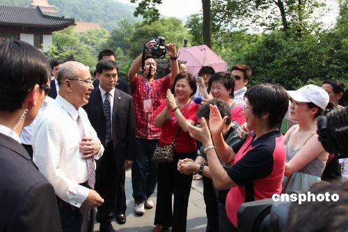 圖:吳伯雄參觀江蘇鎮(zhèn)江金山寺