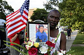 圖:美國(guó)歌迷手捧杰克遜的遺像