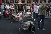丹麥歌迷在廣場(chǎng)上觀看邁克爾·杰克遜病逝的新聞