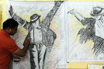 圖:印度畫(huà)家創(chuàng)作畫(huà)像紀(jì)念邁克爾·杰克遜