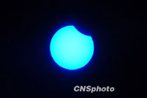 中國各地觀測日食奇觀:連云港上空出現(xiàn)日偏食景觀