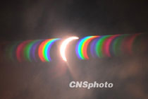 中國各地觀測日食奇觀:日全食重慶“生光”