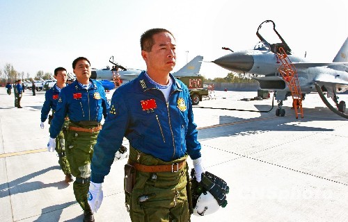 圖:中國空軍飛行表演隊準備升空(3)