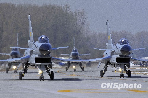 圖:中國空軍飛行表演隊準備升空(4)