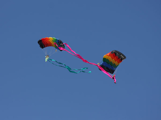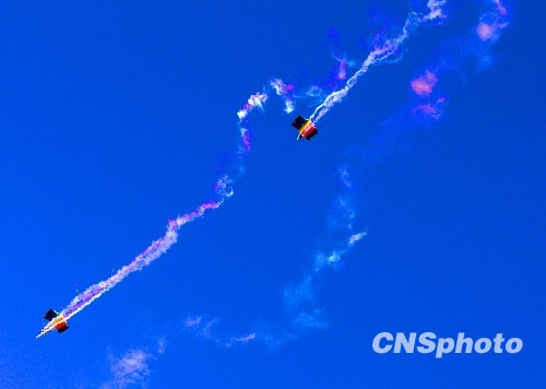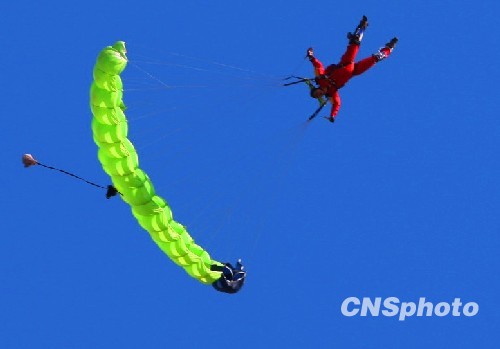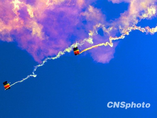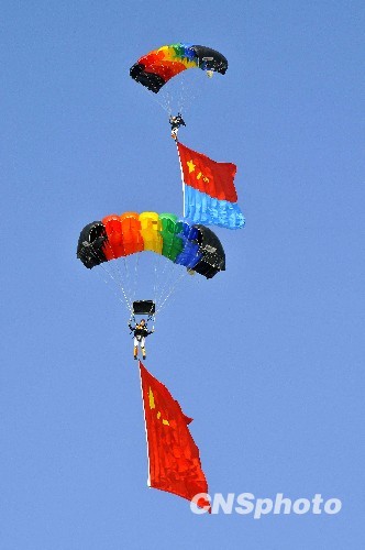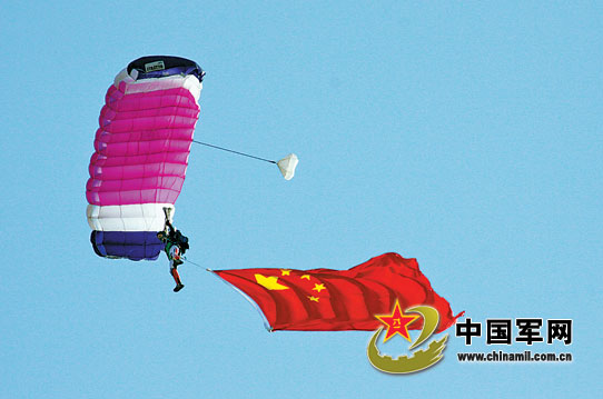 空軍60周年跳傘表演上演“仙女下凡”