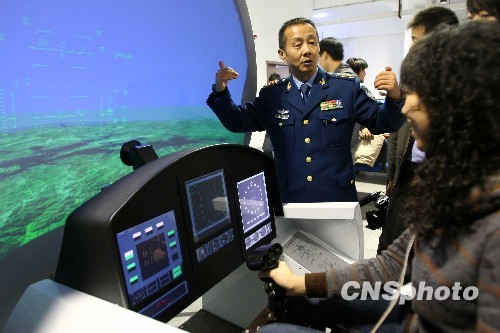 空軍特級飛行員模擬器前講解飛行技巧