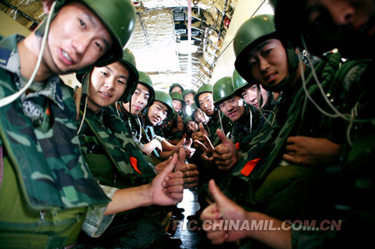 中國空軍舉行紀念建軍六十周年飛行、跳傘預(yù)演(4)
