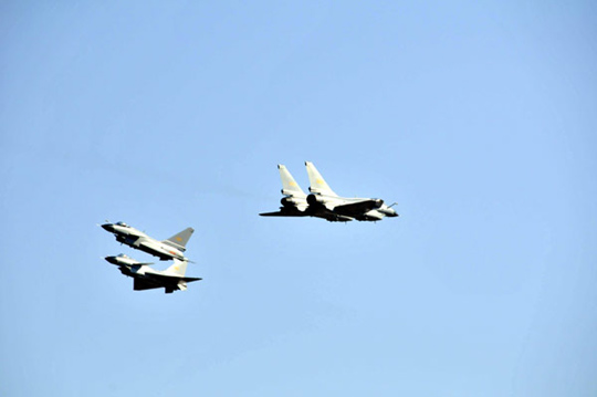 空軍成立60周年紀念日進行首場飛行表演訓(xùn)練(2)