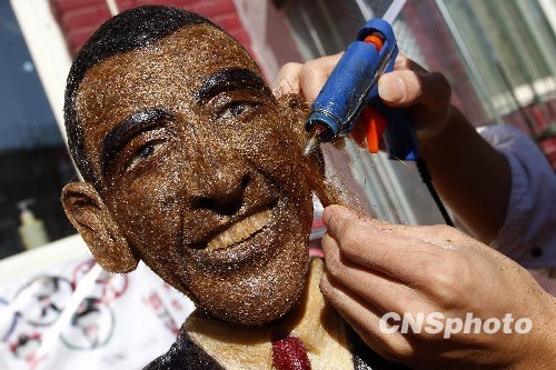 時(shí)尚發(fā)型設(shè)計(jì)師制作頭發(fā)絲版“奧巴馬”