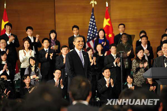 圖:美國(guó)總統(tǒng)奧巴馬在上海發(fā)表演講