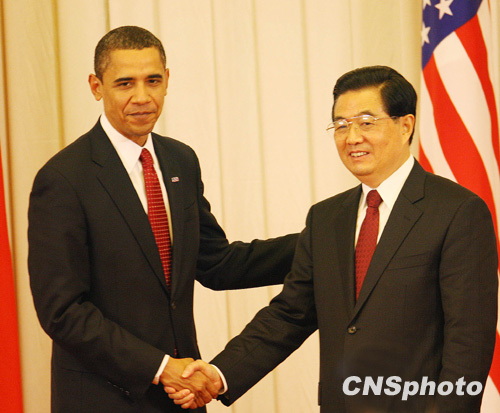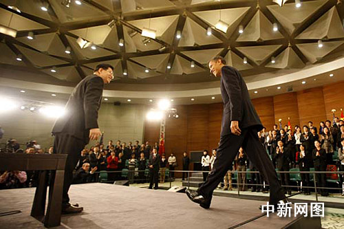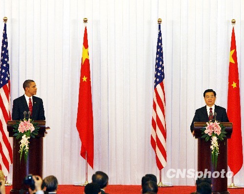 圖:胡錦濤與奧巴馬北京共同會(huì)見記者
