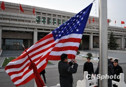 圖:中美國(guó)旗飄揚(yáng)歡迎奧巴馬訪華(2)