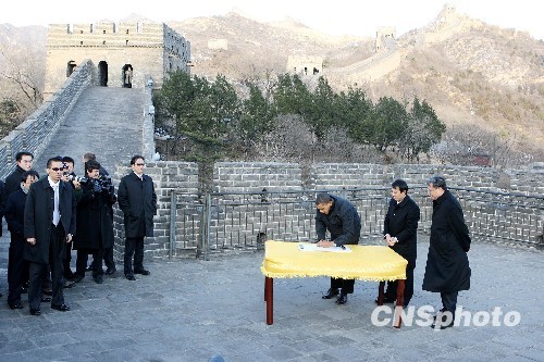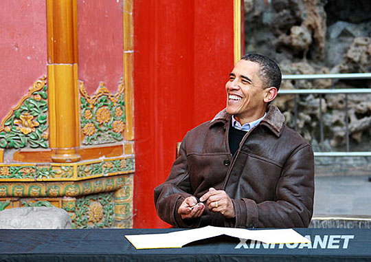 圖:奧巴馬為八達(dá)嶺長(zhǎng)城題詞留念
