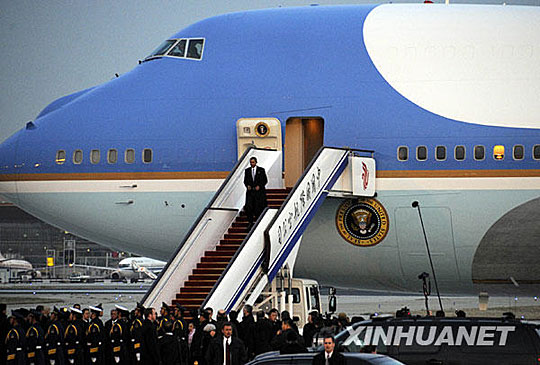 圖:美國(guó)總統(tǒng)奧巴馬乘“空軍一號(hào)”抵達(dá)上海
