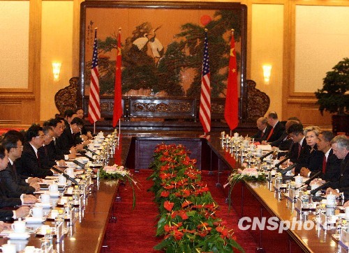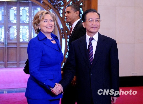 溫家寶會(huì)見美國(guó)國(guó)務(wù)卿希拉里·克林頓