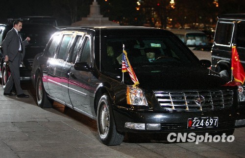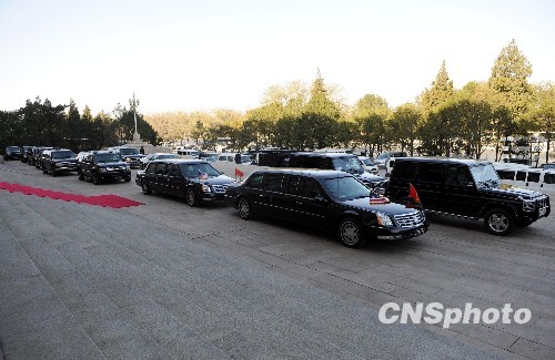 圖:美國(guó)總統(tǒng)“座駕”緊隨奧巴馬訪華行程