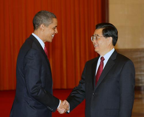 圖:胡錦濤歡迎美國(guó)總統(tǒng)奧巴馬訪華