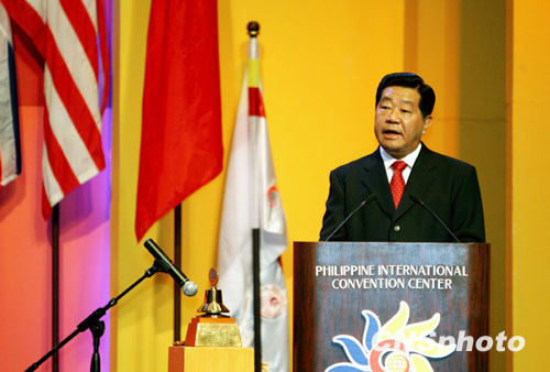 圖:賈慶林在菲律賓出席世界華商大會(huì)開幕式