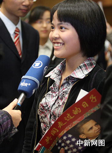 圖:中國(guó)青年向奧巴馬提問(wèn)
