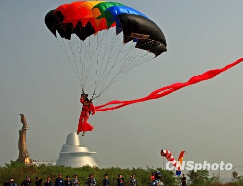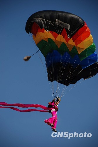 解放軍“八一”跳傘隊(duì)獨(dú)特扮相吸引觀眾
