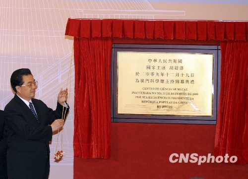 圖:胡錦濤為澳門科學(xué)館揭幕