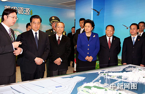 圖:胡錦濤參觀澳門大學(xué)橫琴校區(qū)模型