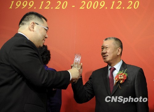 澳門回歸十周年:崔世安與何厚鏵碰杯