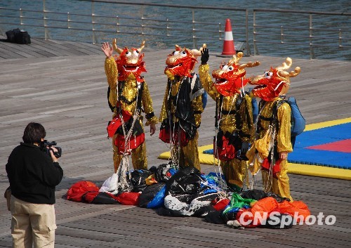 圖:“八一”跳傘隊(duì)澳門上演“仙女下凡”