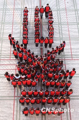 山東大學(xué)生擺“蓮花” 慶澳門回歸10周年