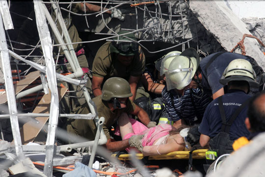 圖:智利強烈地震 救援隊廢墟中搜救幸存者