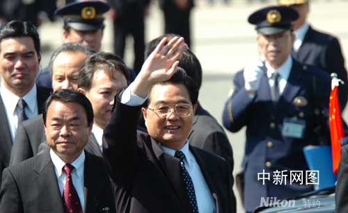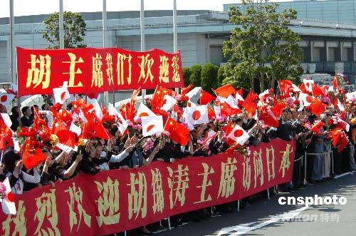 日本酒店懸掛中日國旗迎接胡錦濤訪日