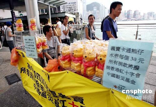 圖:香港街頭為四川災(zāi)區(qū)籌款義賣