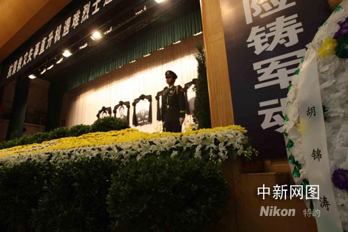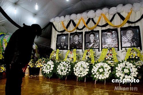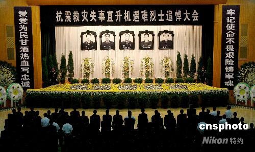 圖:失事直升機(jī)組遇難烈士追悼會(huì)舉行