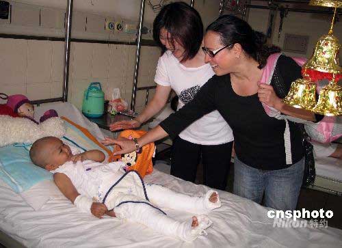 圖:加拿大國(guó)際組織友人看望地震小傷員