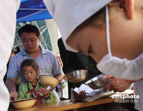 圖:地震災(zāi)區(qū) 父女領(lǐng)取父親節(jié)免費(fèi)午餐