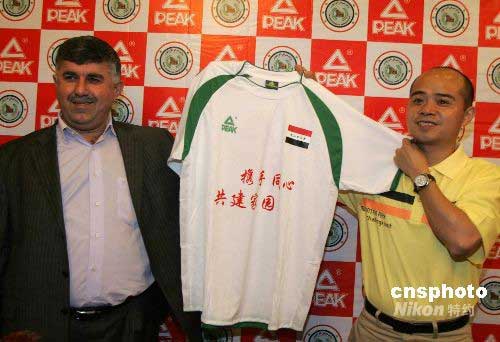 圖:伊拉克隊(duì)著“愛(ài)心球衣”聲援中國(guó)災(zāi)區(qū)