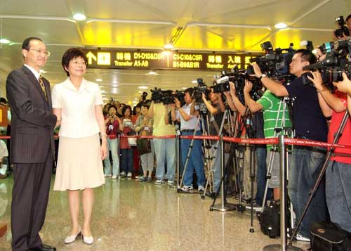 圖:陳云林出席兩岸周末包機南京首航首發(fā)儀式