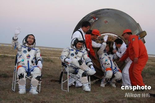 組圖:神七返回艙著陸航天員出艙經(jīng)典瞬間回眸