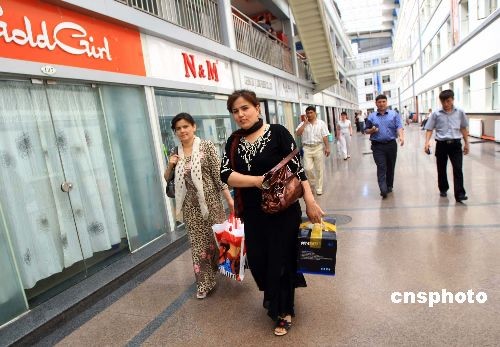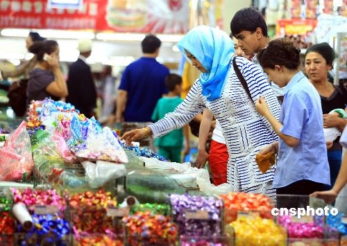 圖:市民在烏魯木齊國際大巴扎內(nèi)購物