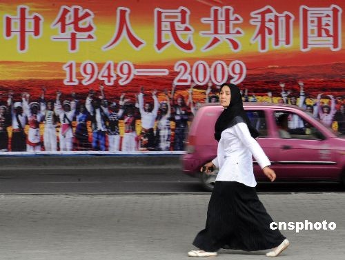 圖:烏魯木齊街頭的建國60周年宣傳畫