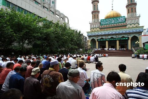 圖:烏魯木齊穆斯林主麻日清真寺內(nèi)做禮拜