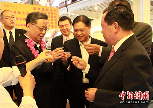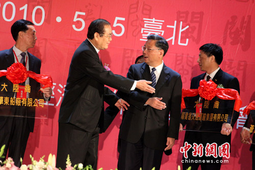 圖:黃小晶曾永權為8家福建赴臺投資企業(yè)授牌