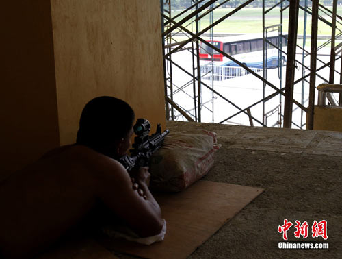菲律賓警方在發(fā)生挾持事件現(xiàn)場搜證