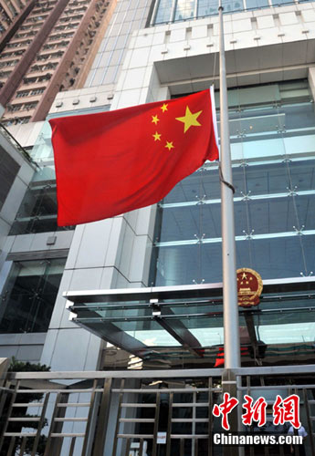 中央駐港機構(gòu)國旗降半旗哀悼遇難香港同胞
